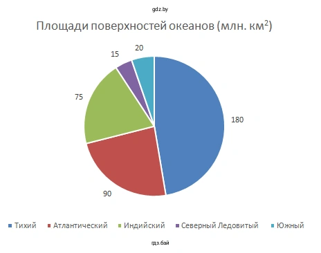 | Название океана | Площадь, млн. км2 | Сектор диаграммы, градусы |