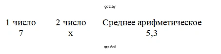 Пусть х – второе число, первое число – 7. Зная, что среднее арифметическое этих чисел равно 5, 3, составим и решим уравнение: