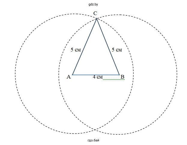 1.137. а) Постройте равнобедренный треугольник, у которого основание равно 4 см, а боковые стороны равны по 5 см.