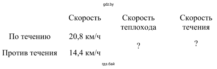 1.14. Скорость теплохода по течению 20,8 км/ч, а против течения 14,4 км/ч. Найдите собственную скорость теплохода и скорость течения