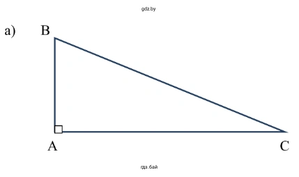 Построение и измерение прямоугольного треугольника ABC.