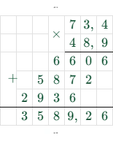 Из условия известно, что длина поля равна $73,4$ м, и это в $1,5$ раза (в полтора раза) больше его ширины. Чтобы найти ширину поля, нужно его длину разделить на $1,5$.