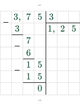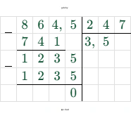 $86,45 : 24,7 = 864,5 : 247 = 3,5$