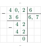 2. Разделим сумму на количество чисел (на 6): $40,2 / 6 = 6,7$.