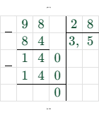 $x = \frac{9,8}{2,8} = \frac{98}{28} = \frac{7}{2} = 3,5$