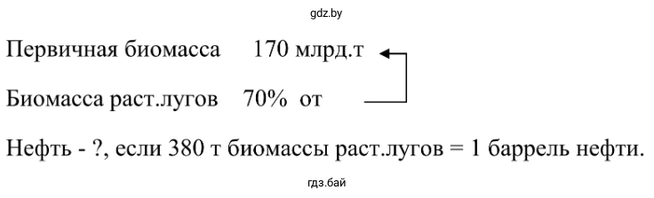 Согласно условию, ежегодно на Земле образуется около 170 млрд т первичной биологической массы. Биомасса растительности лугов, степей и пашен составляет 70% от этого количества. Вычислим эту массу: