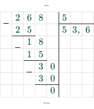$M = \frac{268}{5} = 53,6$.