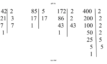 Найдем НОК чисел 42, 85, 172 и 400. Для этого разложим каждое число на простые множители: