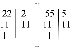 НОК(22, 55) = $2 \cdot 5 \cdot 11 = 110$.