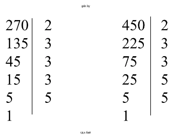 в) Чтобы найти НОК для чисел 270 и 450, разложим их на простые множители.