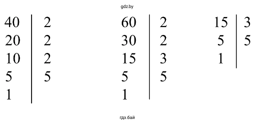 г) Чтобы найти НОК для чисел 40, 60 и 15, разложим каждое число на простые множители.