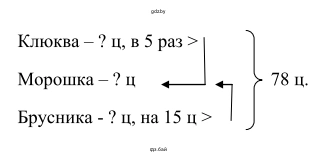 2.121. Артель «Дары леса» заготовила 78 ц морошки, клюквы и брусники. При этом клюквы заготовили в 5 раз больше, чем морошки, а брусники — на 15 ц больше, чем морошки. Сколько центнеров каждой ягоды заготовила артель?