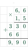 $S_1 = v_1 \cdot t_1 = 6,6 \text{ км/ч} \cdot 1,5 \text{ ч} = 9,9 \text{ км}.$