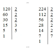 Оба числа, 120 и 224, четные, поэтому их можно разделить на 2:
