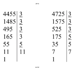 г) Сократим дробь $\frac{4455}{4725}$.