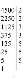 Ответ: $4500 = 2^2 \cdot 3^2 \cdot 5^3$.