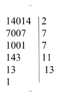Ответ: $14014 = 2 \cdot 7^2 \cdot 11 \cdot 13$.
