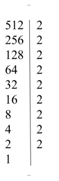 512: Это степень двойки. Будем последовательно делить на 2: