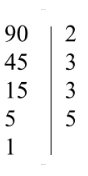 Ответ: $90 = 2 \cdot 3^2 \cdot 5$.