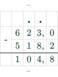 $623 - 518,2 = 104,8$