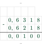 $0,6318 - 0,6218 = 0,01$