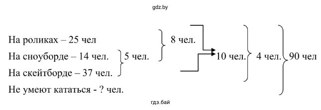 2.184. В летнем оздоровительном лагере 90 детей. На роликовых коньках умеют кататься 25 человек, на сноуборде умеют кататься 14 человек, а на скейтборде — 37 человек. На скейтборде и сноуборде умеют кататься 5 человек, на роликовых коньках и на скейтборде 10 человек, на роликовых коньках и сноуборде — 8, на всех трёх — 4 человека. Сколько детей не умеют кататься ни на роликовых коньках, ни на сноуборде, ни на скейтборде?