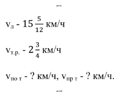 $V_{против\ течения} = V_{собств.} - V_{теч.} = 15 \frac{5}{12} - 2 \frac{3}{4}$