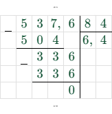 $x - 3,6 = 53,76 : 8,4$