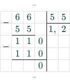 Чтобы найти неизвестный множитель $t$, разделим произведение $6,6$ на известный множитель $5,5$.