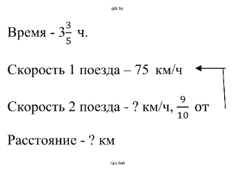 2.283. Из двух городов одновременно навстречу друг другу вышли два поезда и встретились через 335 ч. Найдите расстояние между городами, если скорость одного поезда равна 75 км/ч, а скорость другого составляет 910 от скорости первого поезда .