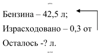 1) 42,5 • 0,3 = 12,75 (л) – бензина израсходовали;