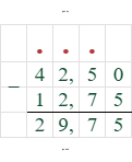 $42,5 \text{ л} - 12,75 \text{ л} = 29,75 \text{ л}$