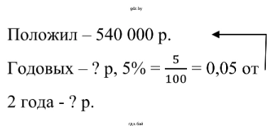 2.332. Вкладчик положил в банк 540 тыс. р. под 5 % годовых, с условием зачисления суммы, полученной по процентам, на этот же счёт. Какая сумма будет у него через: а) 1 год; б) 2 года?