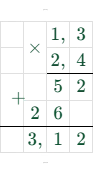 1. Первым шагом выполняется умножение: $11,3 \cdot 2,4 = 27,12$.