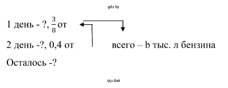2.377. На заправке было b тыс. л бензина. В первый день продали 38 этого бензина, во второй — 0,4 того количества, которое продали в первый день. Сколько бензина осталось на заправке? Найдите значение получившегося выражения при b = 6,4; b = 5614.
