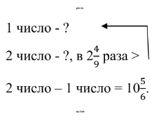 Пусть меньшее число равно $x$. Тогда большее число, которое по условию в $2\frac{4}{9}$ раза больше, будет равно $2\frac{4}{9}x$.
