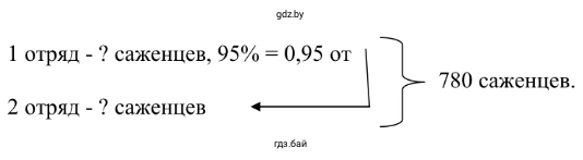 Для решения этой задачи введем переменную. Пусть $x$ — это количество саженцев сосен, которое высадил второй отряд. Согласно условию, первый отряд высадил 95% от числа саженцев, высаженных вторым отрядом. Чтобы найти 95% от $x$, нужно умножить $x$ на 0,95. Таким образом, первый отряд высадил $0.95x$ саженцев.