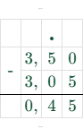2. Выполним вычитание в скобках: $3,5 - 3,05 = 3,50 - 3,05 = 0,45$.