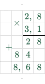 1. Выполним умножение в скобках: $2,8 \cdot 3,1 = 8,68$.