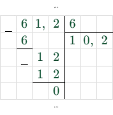 3. Выполним деление: $6,12 : 0,6$. Перенесем запятую в делимом и делителе на один знак вправо: $61,2 : 6 = 10,2$.