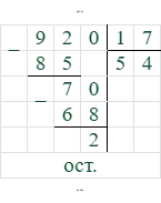 Выполним деление, чтобы найти точное значение: $920 \div 17 = 54$ и остаток $2$.