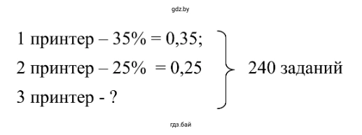 2.446. Задания олимпиады по математике распечатывали на трёх принтерах. На первом принтере распечатали 35 % всех заданий, а на втором принтере — 25 % всех заданий. Сколько заданий распечатали на третьем принтере, если всего было 240 заданий?