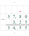 6. Пятое действие — вычитание: $37,8 - 3,25$.