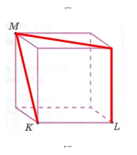 Точки M и L являются пространственно-диагональными вершинами куба (M – левая задняя верхняя, L – правая передняя нижняя). Чтобы найти кратчайший путь по поверхности, развернем две смежные грани, например, верхнюю и переднюю.
