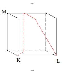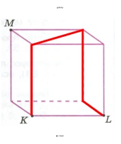 б) который пересекает все горизонтальные рёбра куба, кроме ребра KL.