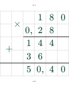 1) 180 • 0,28 = 50,4 – составляют 28% от числа 180;