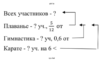 Остальные ученики выбрали карате. Чтобы найти их долю, нужно из общего числа (принятого за 1) вычесть доли пловцов и гимнастов: