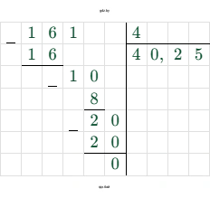 $\frac{16,1 \cdot 10}{0,4 \cdot 10} = \frac{161}{4}$