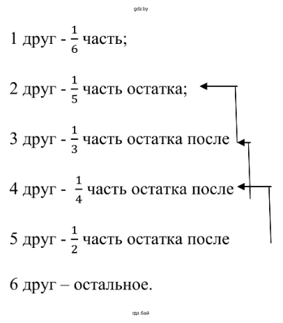 Доля пятого друга: $\frac{1}{2} \times \frac{1}{3} = \frac{1}{6}$.