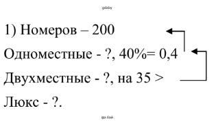 2.533. 1) В гостинице 200 номеров. Из них одноместные номера составляют 40 %, двухместных номеров на 32 больше, чем одноместных, а остальные — номера люкс. Сколько номеров люкс в гостинице?